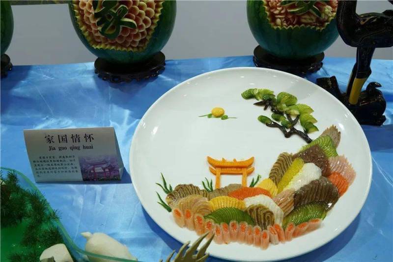 有国才有家,拼盘取材于秭归柑橘枝熏制的各种腊货,切片摆盘成一幅屈原故里山水画,在品尝地道秭归腊味的同时,联想到屈原对家乡和祖国的眷恋。