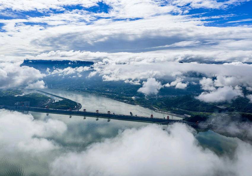 三峡秭归讯(通讯员 王罡)当日,雨过天晴的三峡大坝及附近水域上空云雾缭绕,宛如仙境。