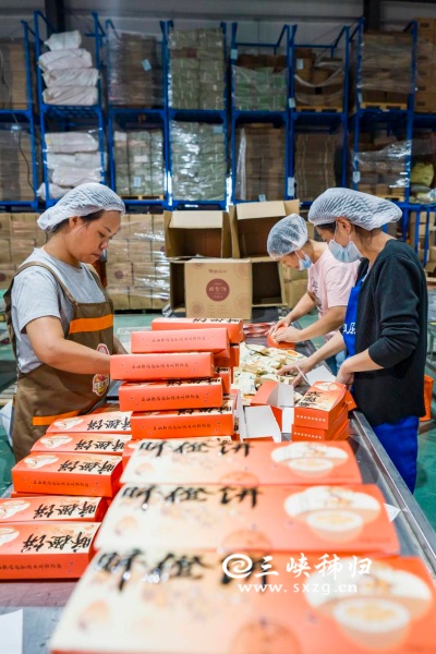 三峡秭归讯(通讯员 周仕伟 岳芳)临近国庆与中秋,9月25日,湖北屈姑国际农业集团加紧对生产出来的脐橙月饼进行包装,供应节日市场。