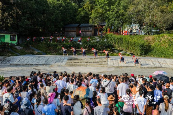 三峡秭归讯(通讯员 王罡 梅俊明)国庆与中秋“双节”期间,秭归县组织非遗传承人和民间艺人走进国家A级景区,为游客表演具有当地峡江特色的非遗节目,让游客在假期间近距离体验非遗文化的魅力。