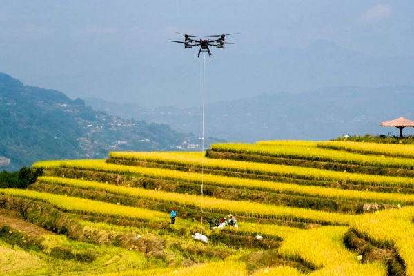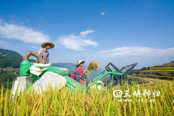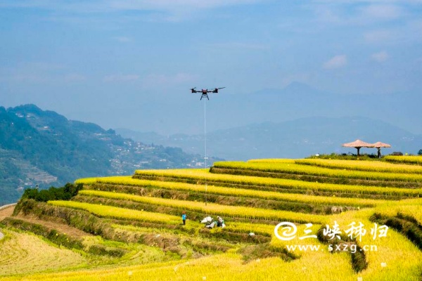 秭归县半高山地区具有冷水稻生长的良好条件,近年来,当地以”公司+合作社+农户”的模式,发展采用传统方式种植的冷水稻产业,以山泉水灌溉的高品质特色冷水稻深受市场欢迎。同时,当地积极推广机械收割与无人机吊运,提升作业效率,降低农业生产成本,高山冷水稻已成为当地乡村振兴的重要产业。