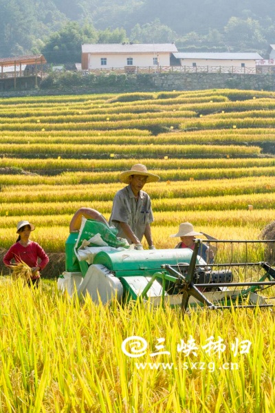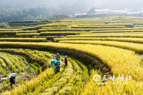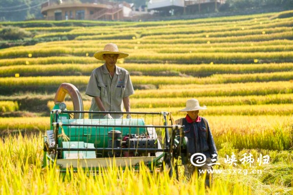 三峡秭归讯(通讯员 周仕伟 马若兰)10月10日,秭归县沙镇溪镇长春村高山特色冷水稻成熟,当地群众抢抓晴好天气加紧收割。