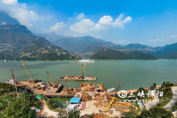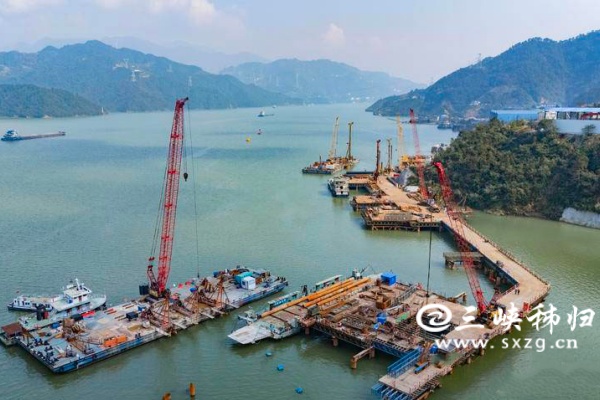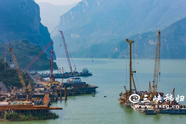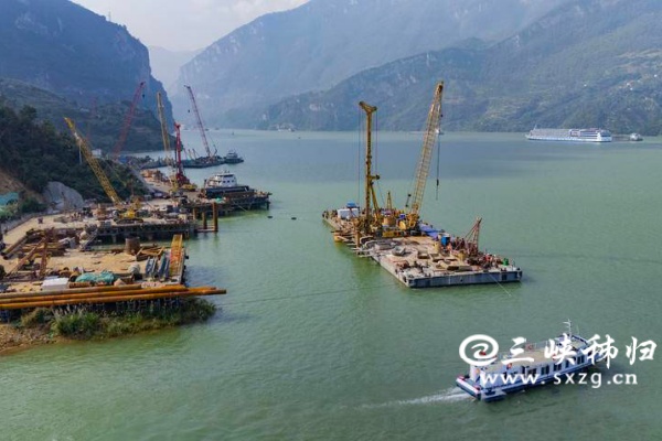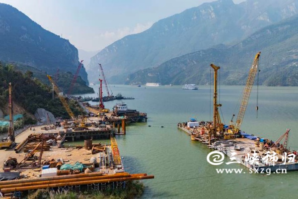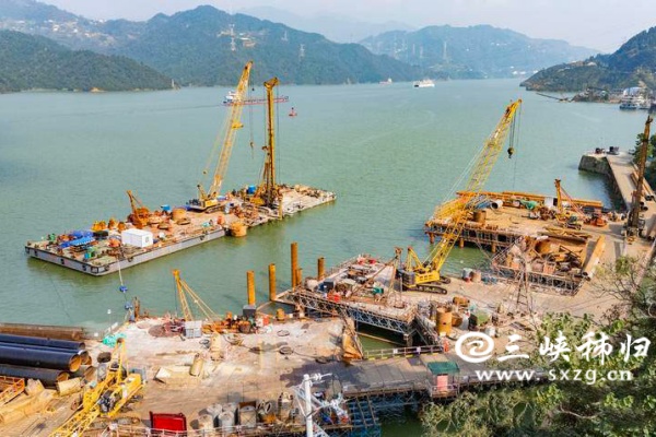 三峡秭归讯(通讯员 彭强)11月4日,位于秭归县茅坪镇太平溪水道右岸的三峡枢纽江南成品油翻坝项目坝上码头工程正在火热施工中,5个5000吨级油品泊位及相应配套设施已初具轮廓,当前正在开展靠船墩栽桩孔及管廊区域主体桩基施工,763米岸线上将建立起连接水陆的能源枢纽。