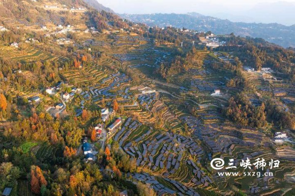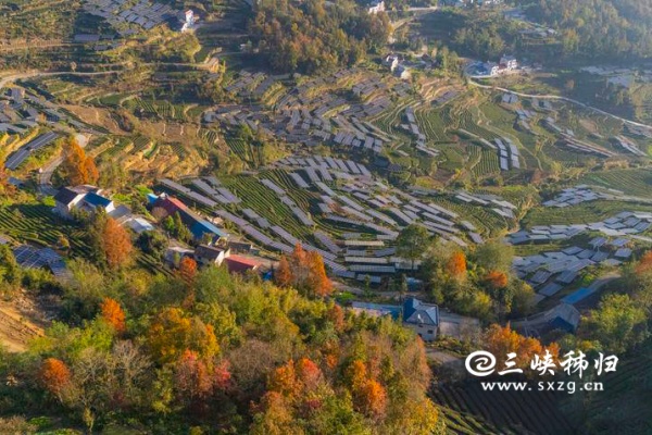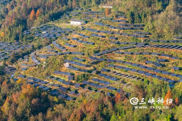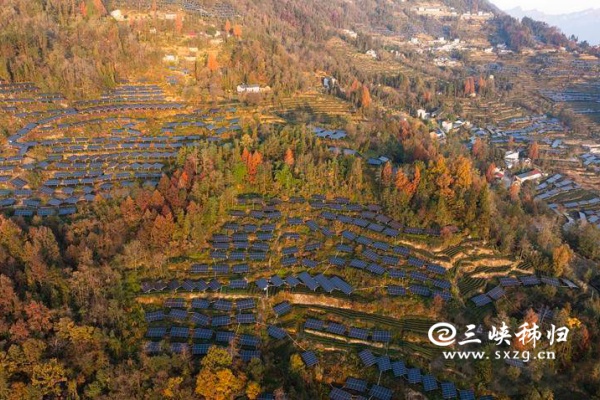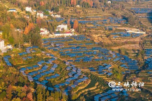 三峡秭归讯(通讯员 彭强)11月26日,秭归县月亮包村,鳞次栉比的光伏发电板分布在山坡上,在冬日暖阳的映照下构成一幅和美乡村生态画卷。