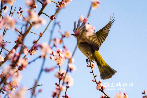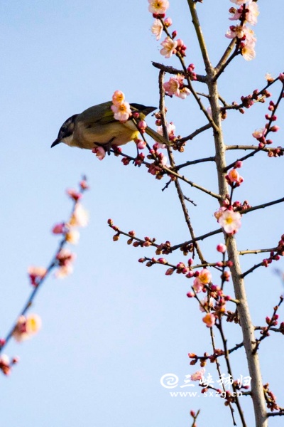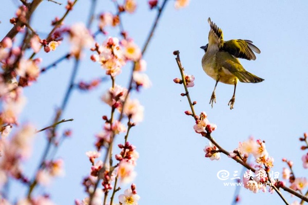 三峡秭归讯(通讯员 吴承忠)时值寒冬,秭归县城街头,一树树红梅陆续绽放,引来各种鸟儿栖息鸣唱,一派鸟语花香,为寒冬的秭归增添了一抹亮色。