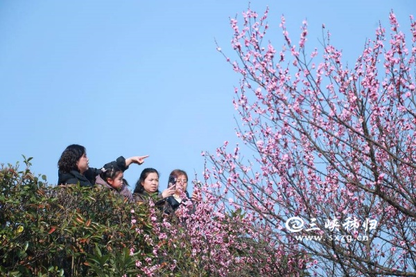 游客和市民在屈原故里文化旅游区赏梅游玩(王罡 摄影)
