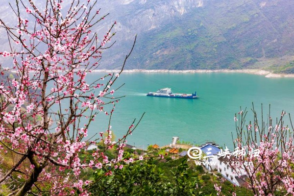 时下,春风送暖,长江三峡西陵峡两岸桃花盛开,与一江春水交相辉映,满目春色美不胜收。