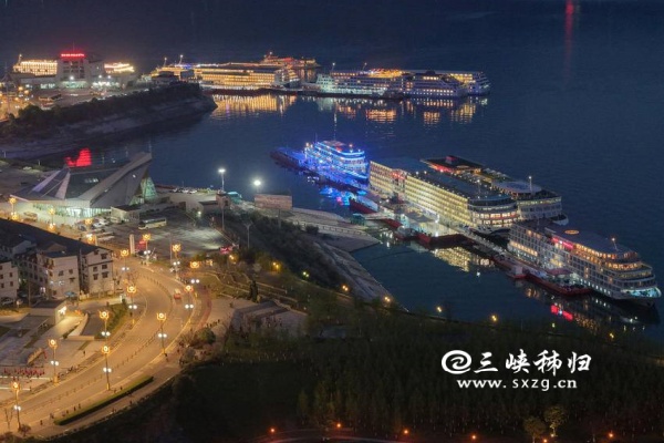 3月30日傍晚,华灯初上,位于三峡大坝坝前的秭归县三峡游轮母港,夜空璀璨,热闹非凡。