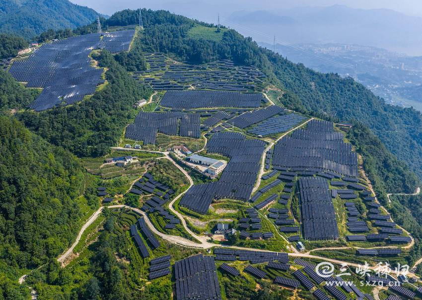 位于三峡库区的湖北省宜昌市秭归县,一排排蓝色光伏板整齐铺展,阳光洒落熠熠生辉,与多姿多彩的村庄构成一幅幅靓丽的夏日山村生态新图景。