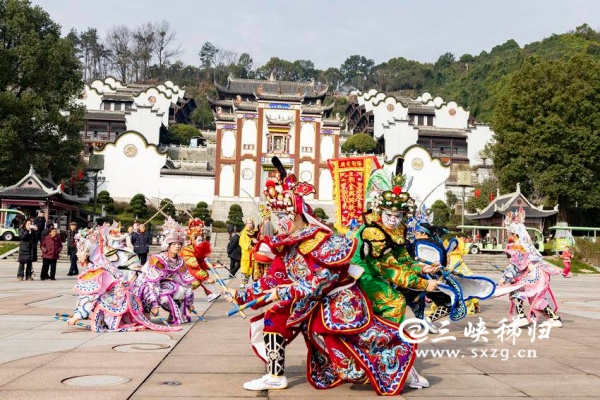 2月18日农历大年初二,秭归县屈原故里文化旅游区内锣鼓喧天,热闹非凡,一场独具潮汕特色的英歌劲舞表演正热闹上演,与当地居民和广大游客共闹新春,享受新年 ...