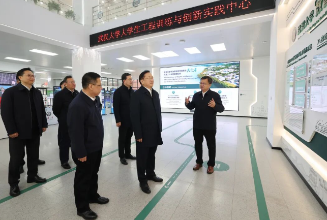 12月18日,省委书记、省人大常委会主任王忠林到武汉大学集成电路学院、大学生工程训练与创新实践中心调研科教融合、创新创业工作。