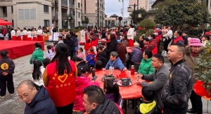 茅坪镇丹阳社区在范家湾小区举行主题为“福飨邻里宴暖新春”元旦年猪宴暨幸福小区主题活动,共迎新春佳节。
