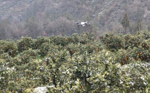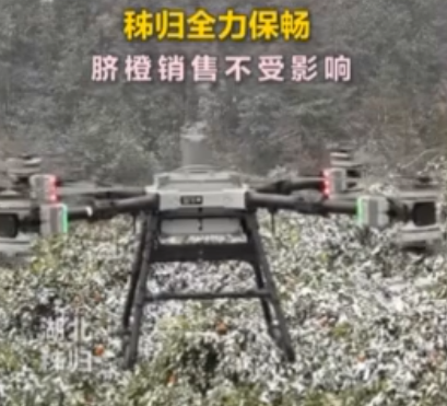 梅家河乡郑家岭村采用无人机为柑橘园除雪,全力保障果树安全过冬。