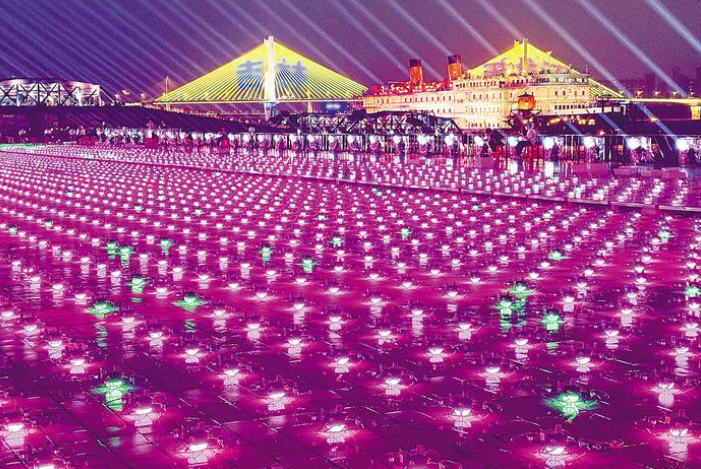 开幕式联排现场,现代科技渲染大江风华 4000架无人机演绎“江豚逐浪来”
